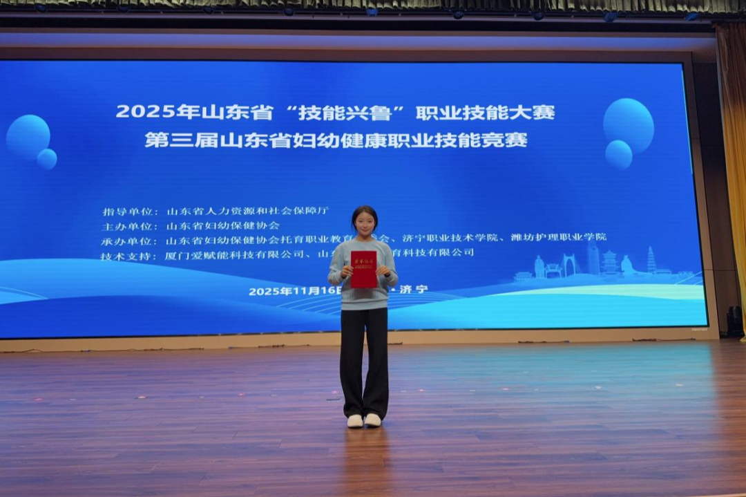 11月16日,2025年山东省“技能兴鲁”职业技能大赛第三届山东省妇幼健康职业技能竞赛落下帷幕,教师教育学院2025级学生王思琦获得育婴员赛项学生组二等奖,教师高倩倩、孙君玲分别获得婴幼儿发展引导员赛项职工组三等奖。