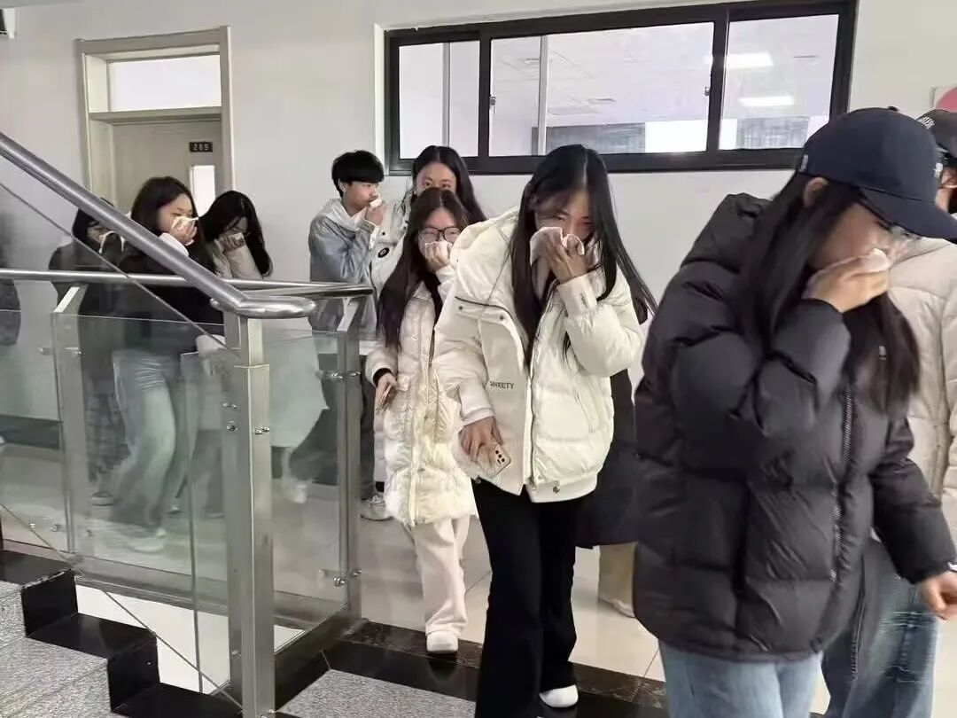随着消防警报响起,演练正式拉开帷幕。11号宿舍楼的学生们迅速反应,用湿毛巾捂住口鼻,弯腰低姿,沿安全通道有序撤离;教学楼内的学生在辅导员指挥下,也按预定路线快速疏散。数分钟内,全体师生均安全抵达指定区域,各班、各宿舍快速完成人员清点与上报,展现出良好的应急素养。