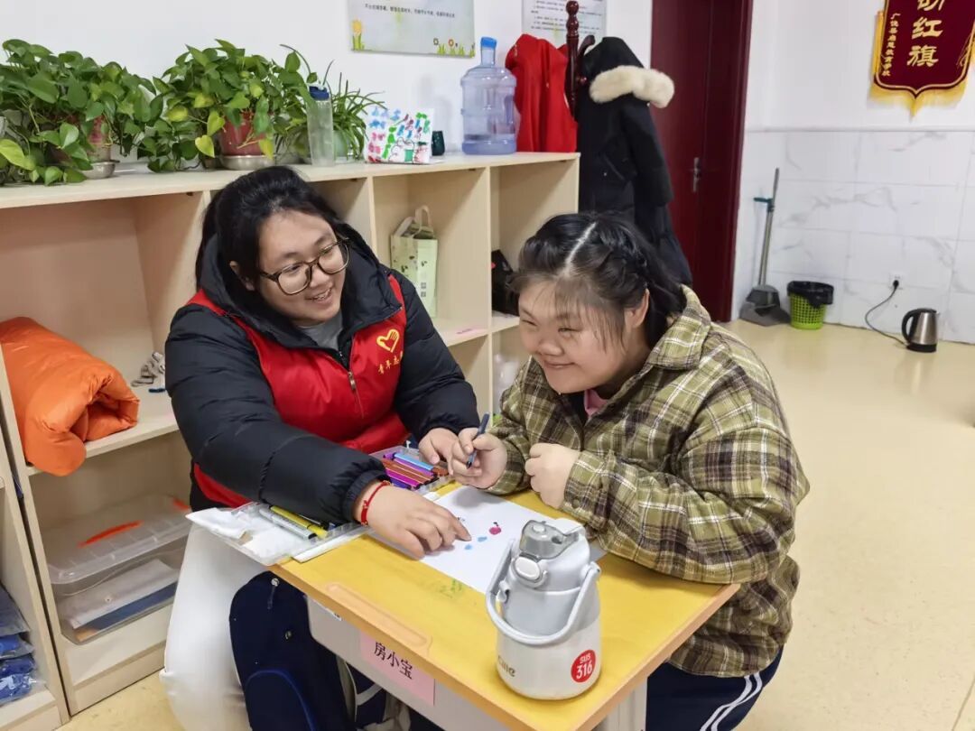 走进广饶县启慧特殊教育学校,志愿者们以多维活动开展第四十一期共建课堂。以美育为核心,第一节课教孩子们绘制手指印画,用多彩指印勾勒童趣世界;第二节课带领大家用卡纸制作冬至饺子手工,在动手实践中感受传统节日氛围;第三节课开展图形涂色教学,让孩子们用画笔挥洒想象力,在色彩创作中培养审美能力。