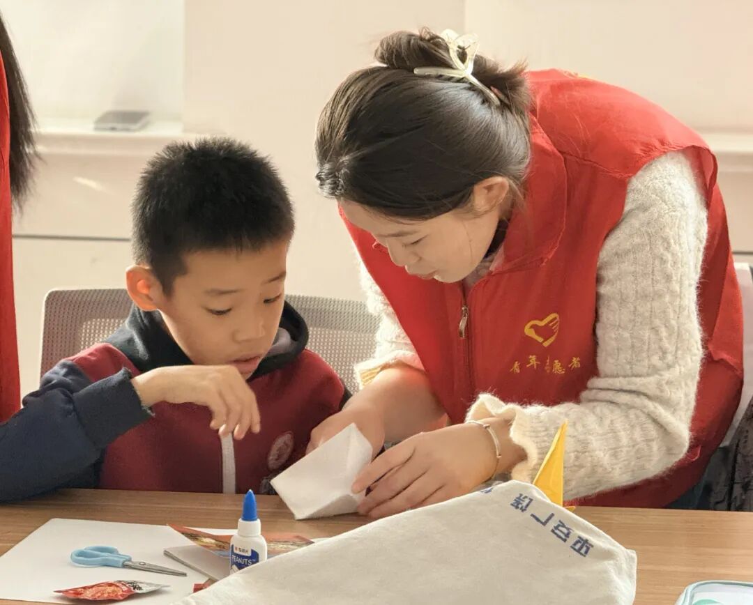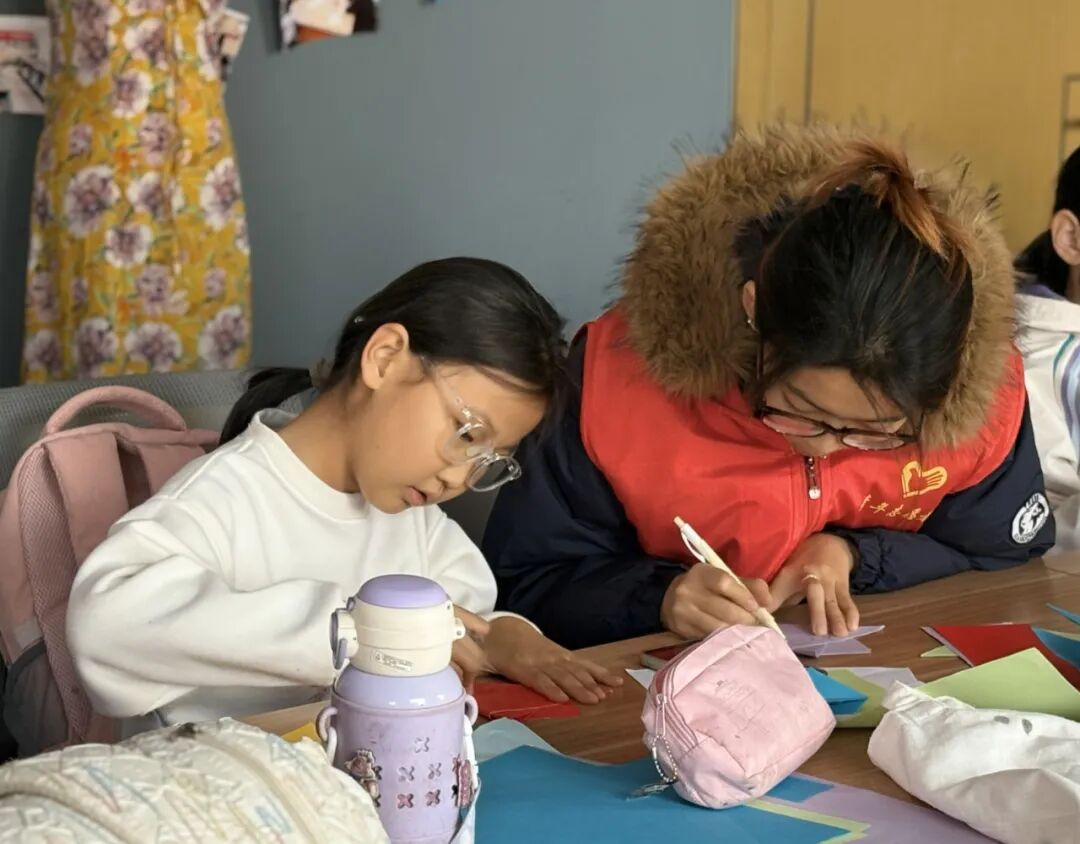 在康居社区的志愿课堂热闹非凡。手工课上,孩子们用安全剪刀和彩纸巧手制作爱心、千纸鹤,在折叠与剪裁中锻炼动手能力;口语课以“老师说”的互动形式展开,通过趣味指令练习提升孩子的反应力。志愿者还将法律知识融入趣味游戏,让孩子们在轻松的氛围中接触法治常识,让法治的种子悄然在童心扎根。